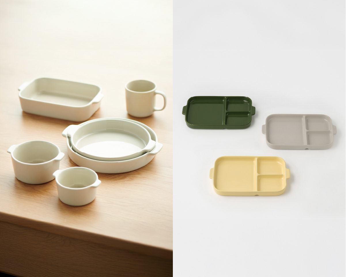 매일의 식탁을 다채롭게 채우는, 세 가지 색상의 데일리 도자기 식기.