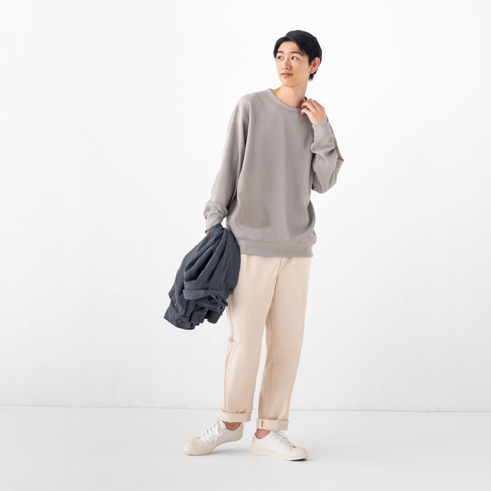 와플 조직으로 완성한 남성 크루넥 긴소매